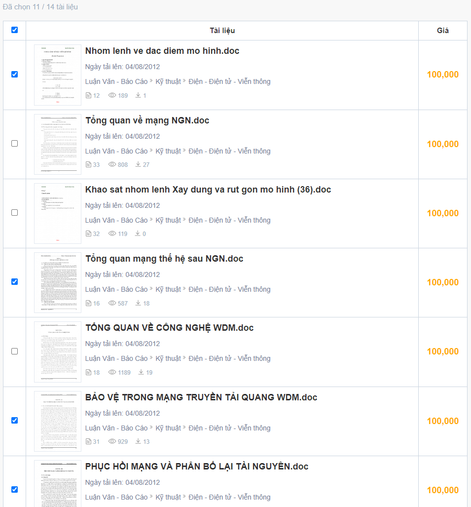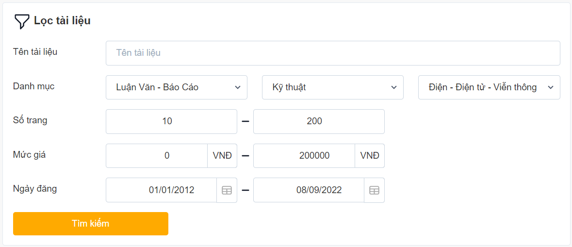 - Theo mức giá: Các tài liệu nằm trong khoảng giá được chọn