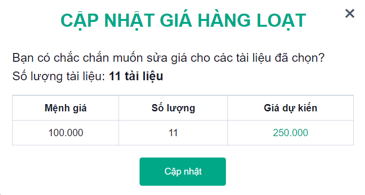- Chọn tăng hoặc giảm tỉ lệ giá tài liệu.
